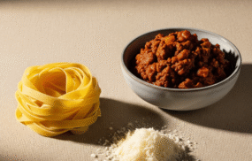 Gourmet pasta and sauce sets,effortlessly combined for a perfect meal.